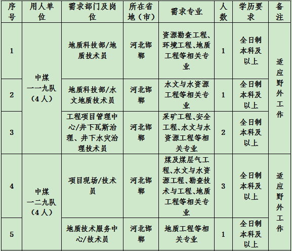 根據(jù)《中國煤炭地質(zhì)總局2023年度應屆高校畢業(yè)生招聘公告》相關要求,結合中煤一局集團有限公司發(fā)展需要,現(xiàn)向社會公開招聘2023年應屆高校畢業(yè)生,有關事項公告如下: