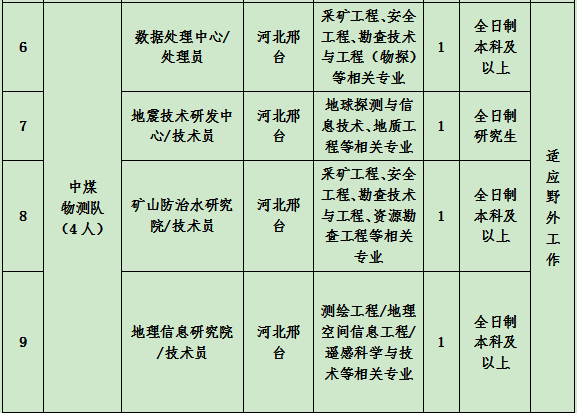 (4)能滿足用人單位的招聘崗位要求,服從單位工作安排,認真遵守和履行單位的各項規(guī)章制度,身體素質(zhì)好,吃苦耐勞,能適應野外工作。