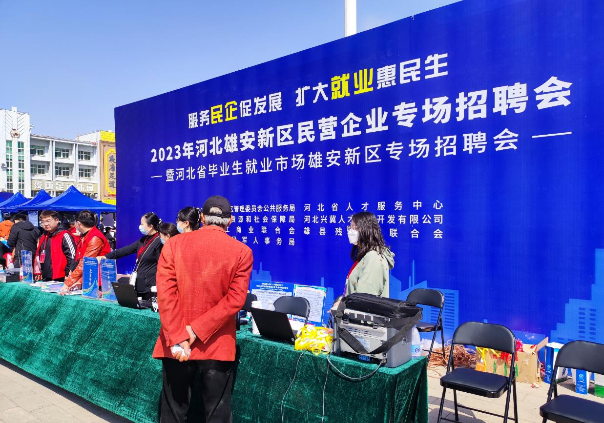 為深入貫徹黨的二十大精神,落實黨中央、國務院,省委省政府穩(wěn)就業(yè)決策部署,充分發(fā)揮個體工商戶私營企業(yè)就業(yè)創(chuàng)業(yè)主渠道和生力軍作用,引導高校畢業(yè)生、退役軍人等群體面向民營企業(yè)就業(yè),幫助民營企業(yè)解決招工穩(wěn)工難題,促進民營經(jīng)濟高質量發(fā)展,由河北雄安新區(qū)管理委員會公共服務局與河北省人才服務中心共同主辦,雄縣人力資源和社會保障局、安新縣人力資源和社會保障局、容城縣人力資源和社會保障局、河北興冀人才資源開發(fā)有限公司聯(lián)合承辦的2023年河北雄安新區(qū)民營企業(yè)專場招聘會暨河北省畢業(yè)生就業(yè)市場雄安新區(qū)專場招聘會于4月26日正式啟動。