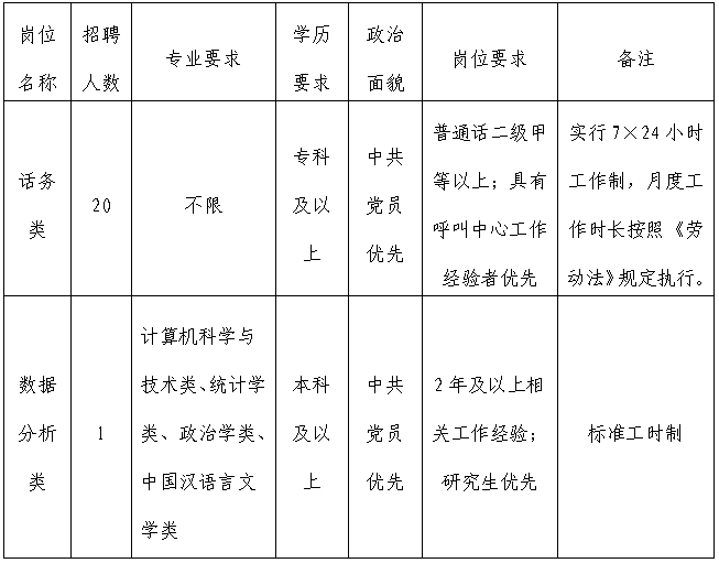 河北省12345政務(wù)服務(wù)便民熱線是省政府設(shè)立的非緊急類綜合公共服務(wù)平臺。根據(jù)工作需要,公開招聘工作人員21名。現(xiàn)將具體事宜公告如下: